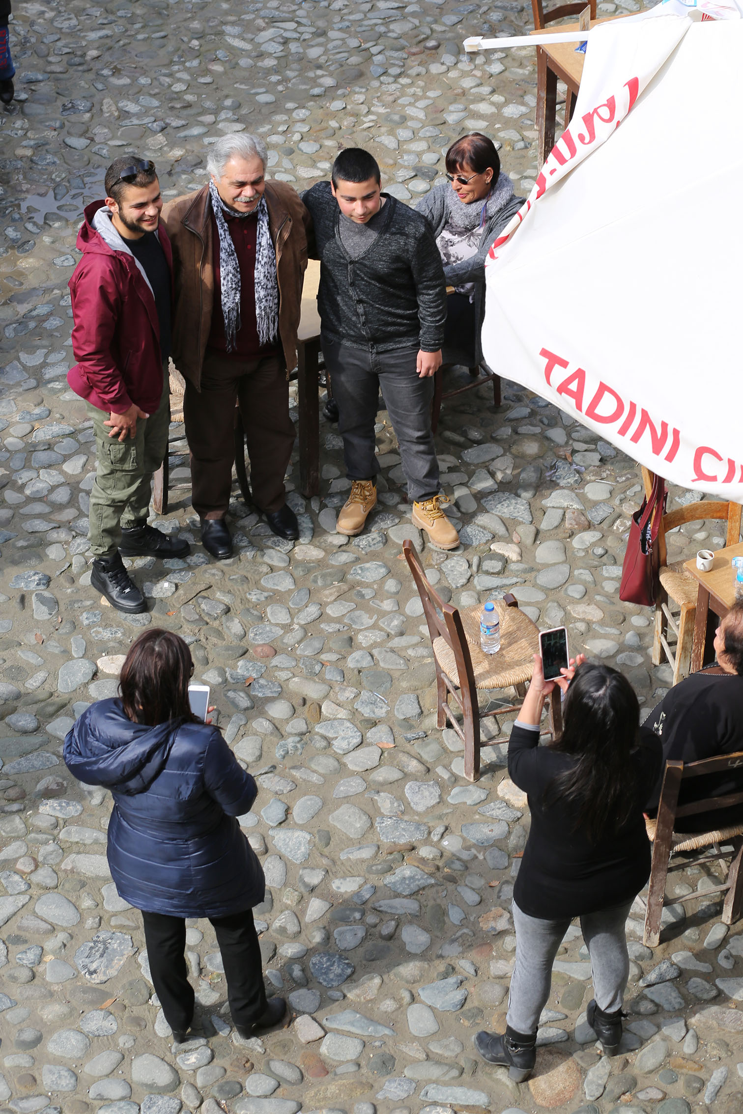 Dizi çekimlerinden fırsat buldukça aile, dost ziyaretleri için her fırsatta adaya gelen Osman Alkaş’ı, son 2 günlük kaçamağında yakaladık. Perşembe gelmiş, cumartesi öğle saatlerinde dönecek. Cuma günü buluştuk röportaj için. En fazla 2 saat diye planladık; dar zamanını tasarruflu kullanmak gailesiyle. Ama iyi fotoğraf mekânı olur düşüncesiyle Büyük Han’ı seçmekle hata yaptığımız, kısa sürede ortaya çıktı. Her Kıbrıslı gibi 5-10 kişiyle merhabalaşır, devam ederiz sandık ama Azeri turistlerden, Almanlara, Rumlardan Türk turist gruplarına kadar yüzlerce insanın odak noktası olacağını hesaba katmadık. Neredeyse bölgeden her geçenle fotoğraf çektirdi, muhabbet etti. Çocuktan yaşlıya herkesle. Bana da cep telefonlarıyla fotoğraflamak düştü. “Ben yoruldum, sen yorulmadın mı” diye sorunca da, “Yorucu ama besleyici” dedi her zamanki gür kahkahasıyla…