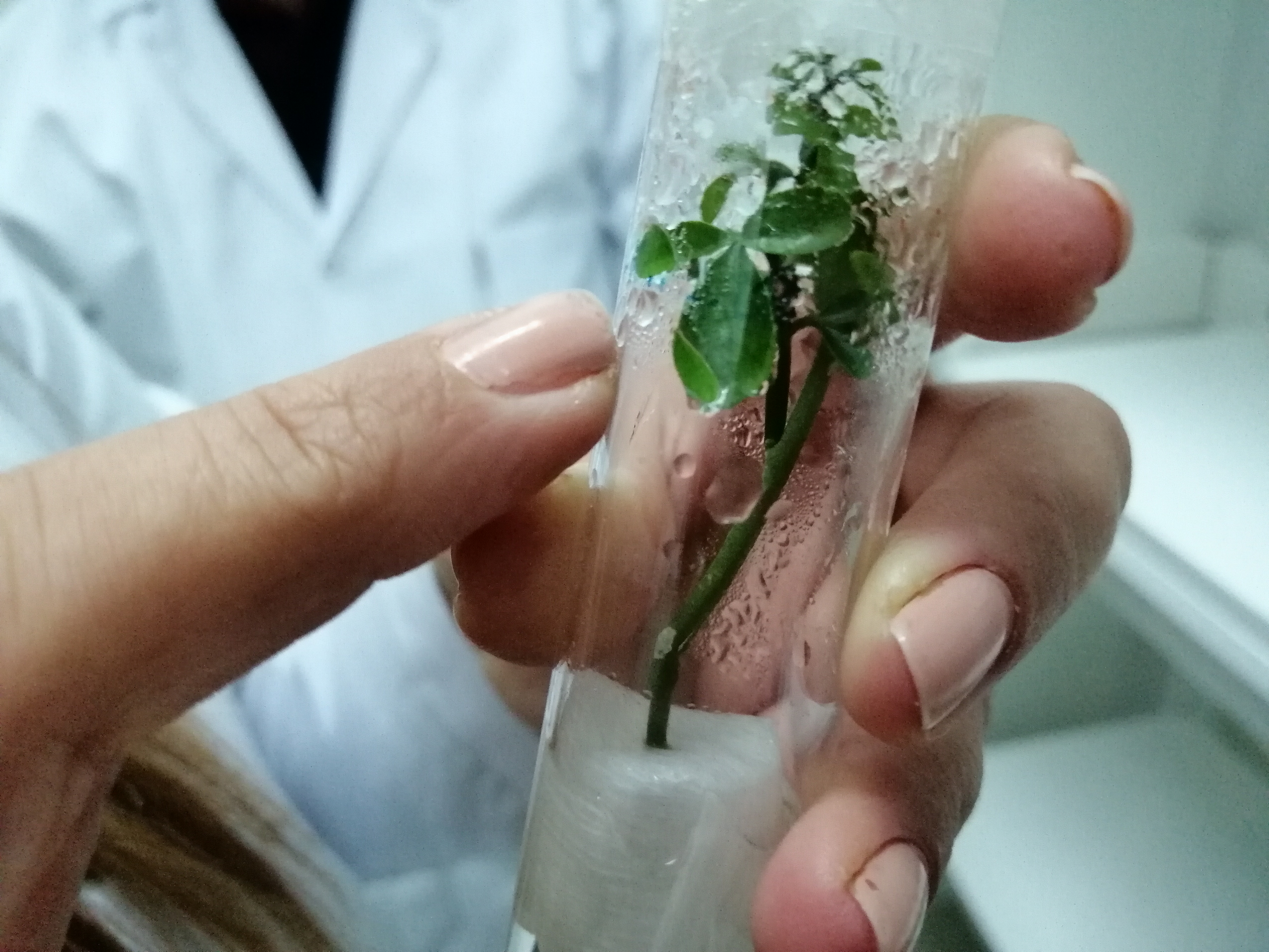 Üretim bölümünden aşılı fidanlar alınıyor. Önceden belirlenmiş çeşitlerden. Şu an üzerinde çalıştıkları 4’ü portakal, 6 tür. Kıbrıs Limonu, Tango Mandarin ile portakal çeşitleri Yafa, Valencia Midnight, Valencia Late ile Washington Navel. Bu aşılı fidanlar Termoterapi odasında ortalama 25-30 derecede muhafaza ediliyor. Laboratuvar üretiminin ana maddesi, bunlardan çıkan sürgünler. Bu sürgünlerin en küçükleri, en uçtakiler alınıyor ve mikroskopla ince, detaylı çalışma süreci başlıyor. Bu sürgünlerden hastalıklardan, virüslerden arınmış, türünün özünü ve özelliklerini bire bir koruyan onlarca fidan özel ortamlarda geliştiriliyor. Testlerle birlikte bu fidanların üreticinin kullanımına sunulması için öngörülen süre 1.5-2 yıl.